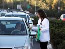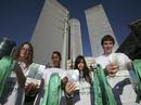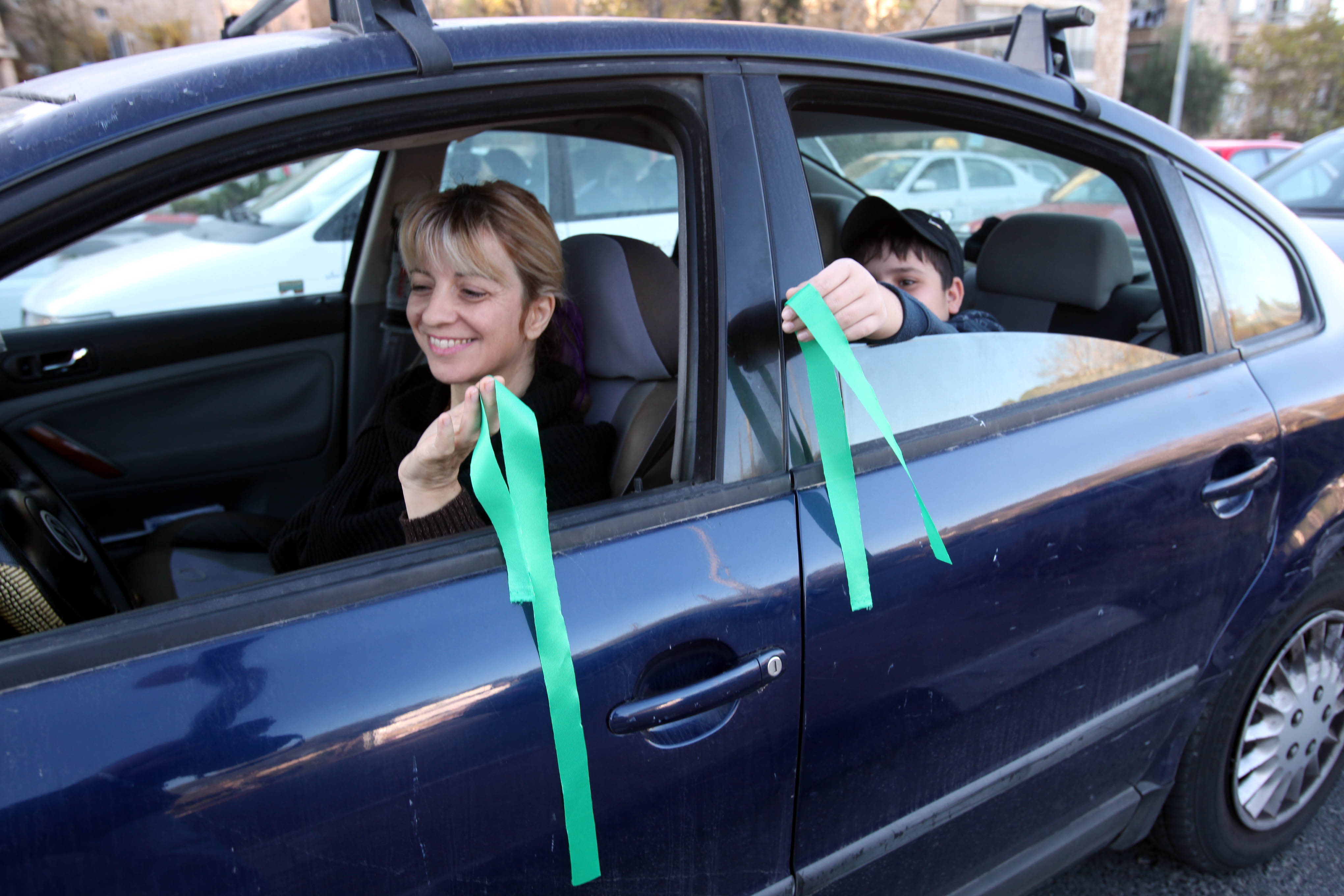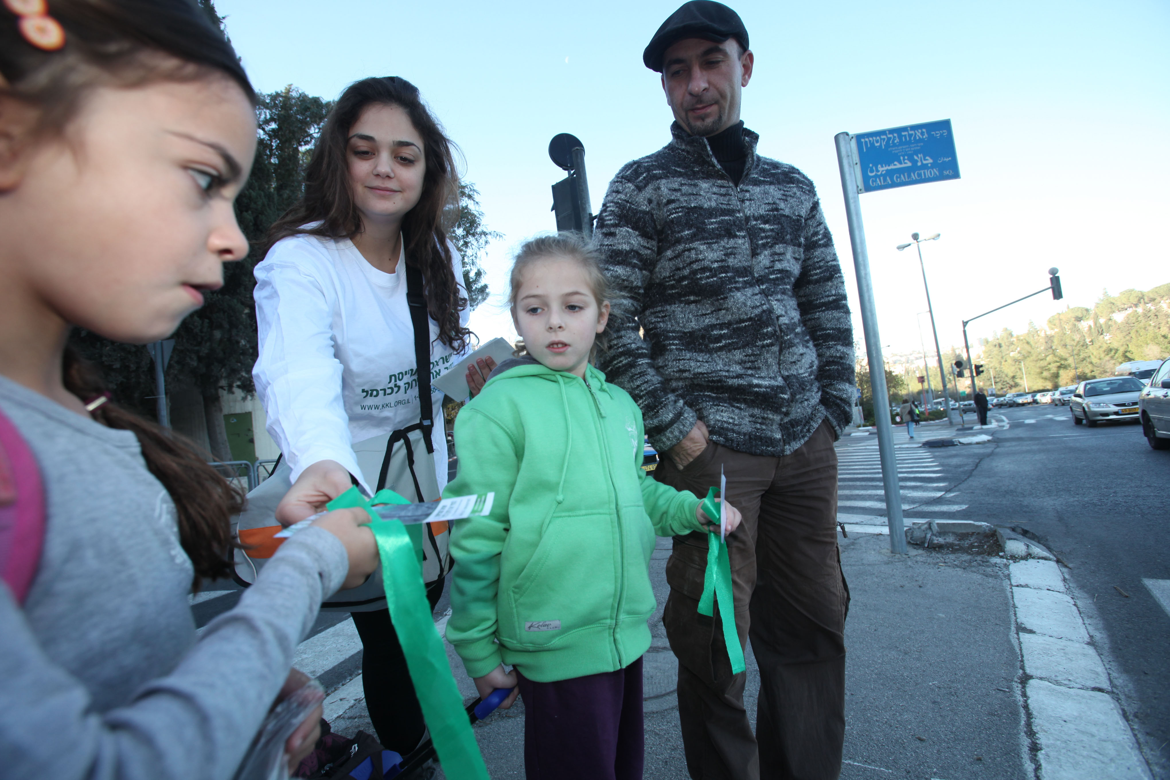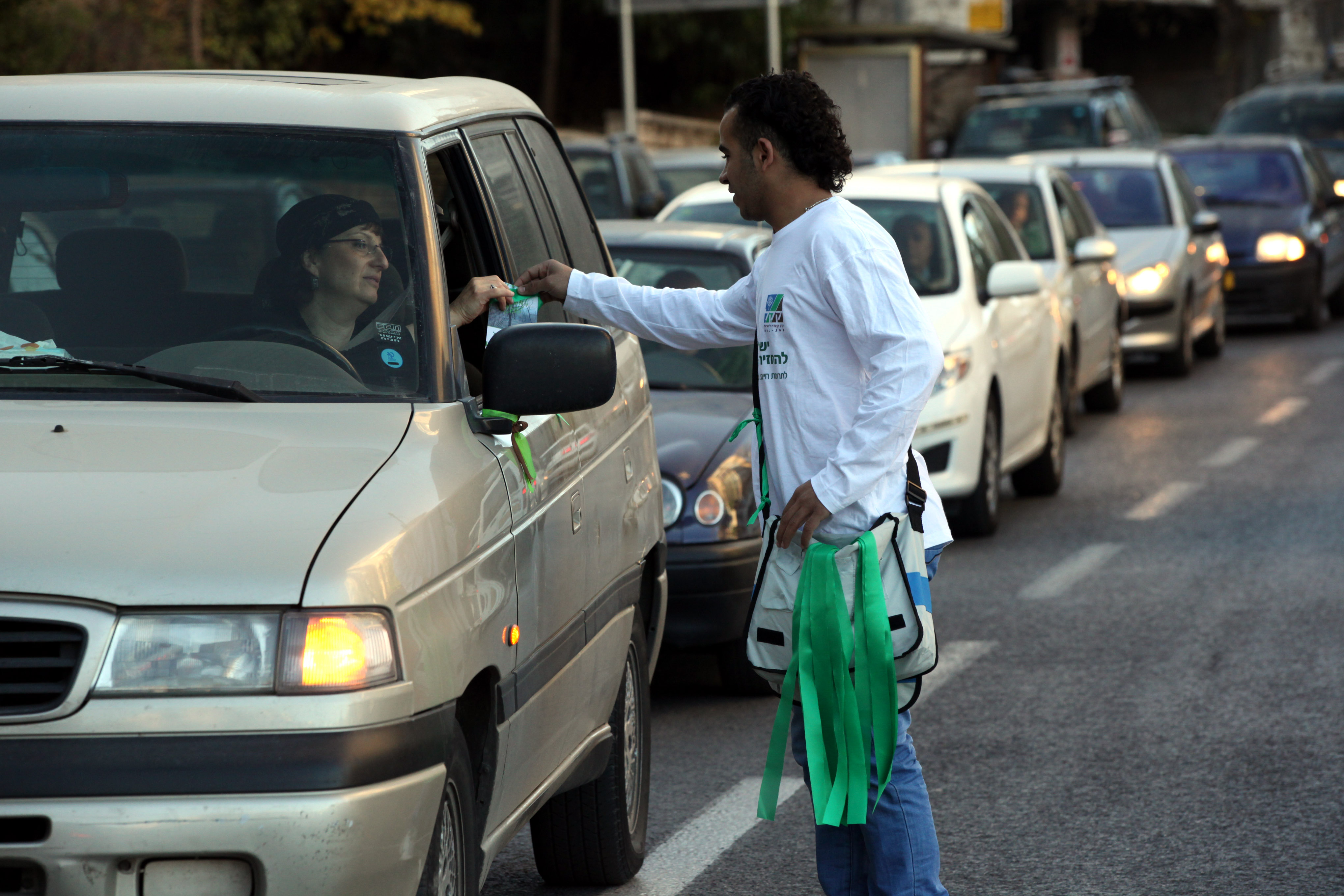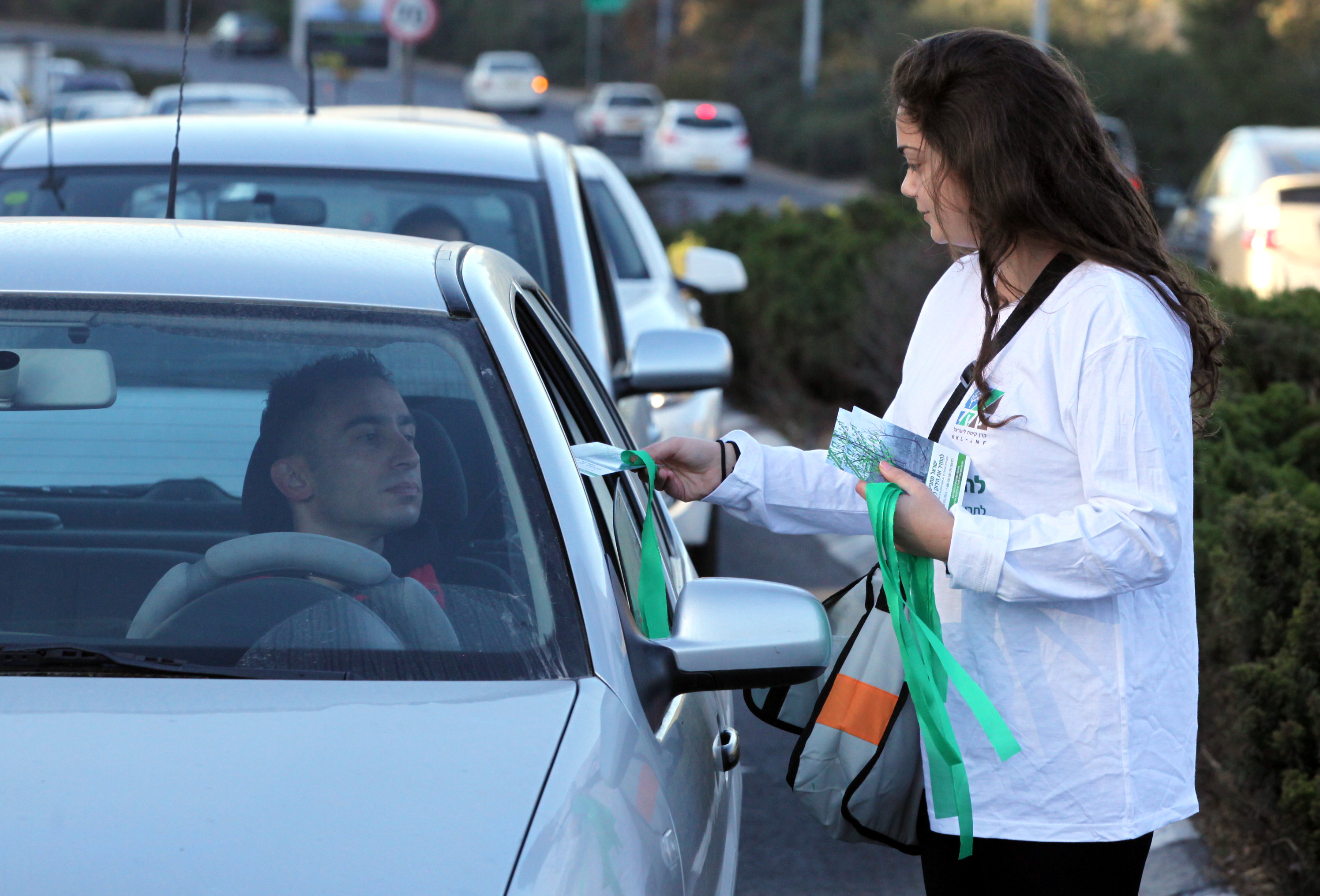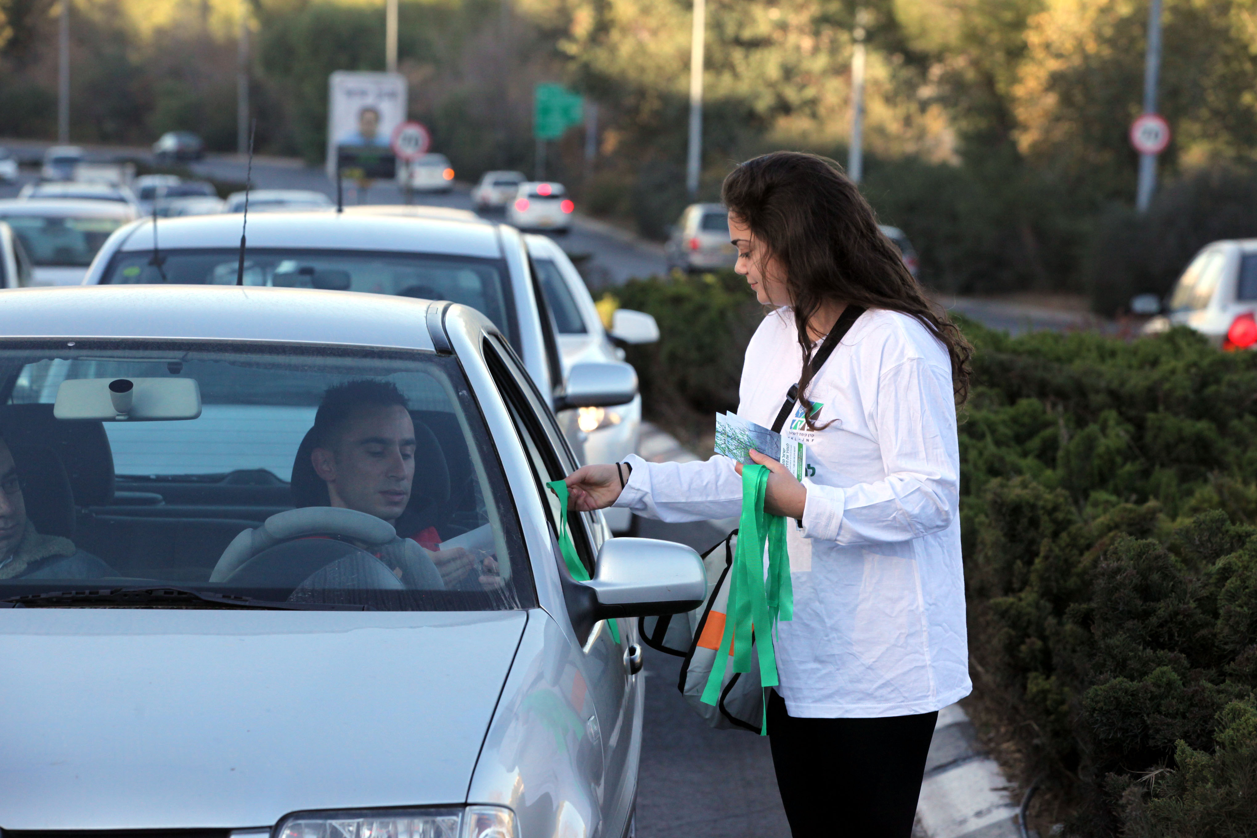 Distributing green ribbons